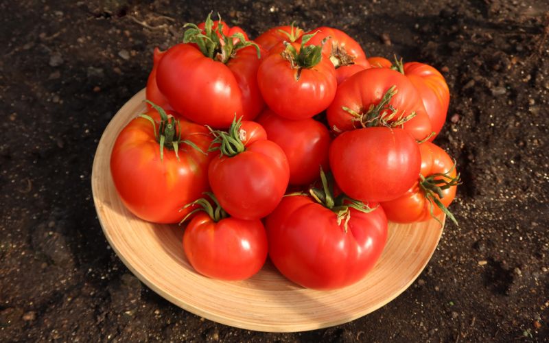 До середины августа днём было + 20-25°С, ночами – + 10-12 °С (а нередко и ниже). Однако сложные климатические условия практически не отразились на развитии томатов. Новые сорта, устойчивые к неблагоприятным факторам среды, доказали, что они продуктивны всегда и при любой погоде. Урожайность отличная, вкус превосходный! Единственное, поспевать плоды начали позже на 2-3 недели обычного.