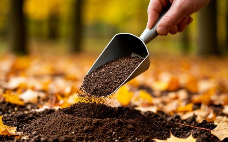 Распределяйте подкормку равномерно по приствольному кругу, избегайте попадания на листья для избежания повреждений. Затем аккуратно взрыхлите почву, чтобы улучшить доступ воздуха и ускорить растворение удобрений. В конце замульчируйте поверхность для защиты от холода.