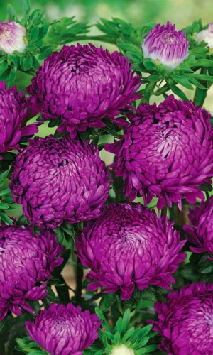 ОднолетнееГустомахровая, обильноцветущая астра с очень крупными соцветиями. Кусты высокорослые, пирамидальные, состоят из множества длинных цветоносов. Многочисленные боковые побеги несут огромное количество одновременно открытых цветков, которые сплошь покрывают кусты...