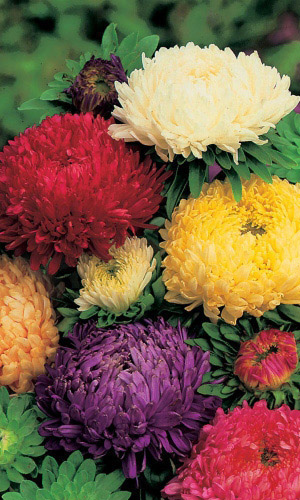 ОднолетнееГустомахровая, обильноцветущая астра с очень крупными соцветиями. Кусты высокорослые, пирамидальные, состоят из множества длинных цветоносов. Многочисленные боковые побеги несут огромное количество одновременно открытых цветков, которые сплошь покрывают кусты...