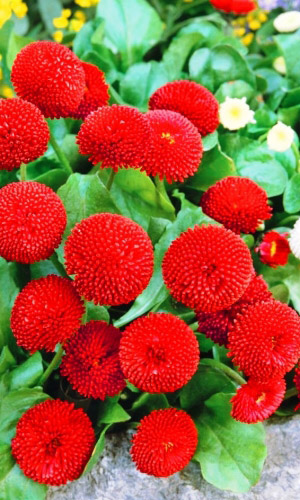 Очаровательные, миниатюрные маргаритки изумительной красоты, с многочисленными помпонными, густомахровыми соцветиями, ярко-красной окраски. Используется для обрамления клумб, ковровых посадок, оформления бордюров, как почвопокровное растение, а так же как балконная и...