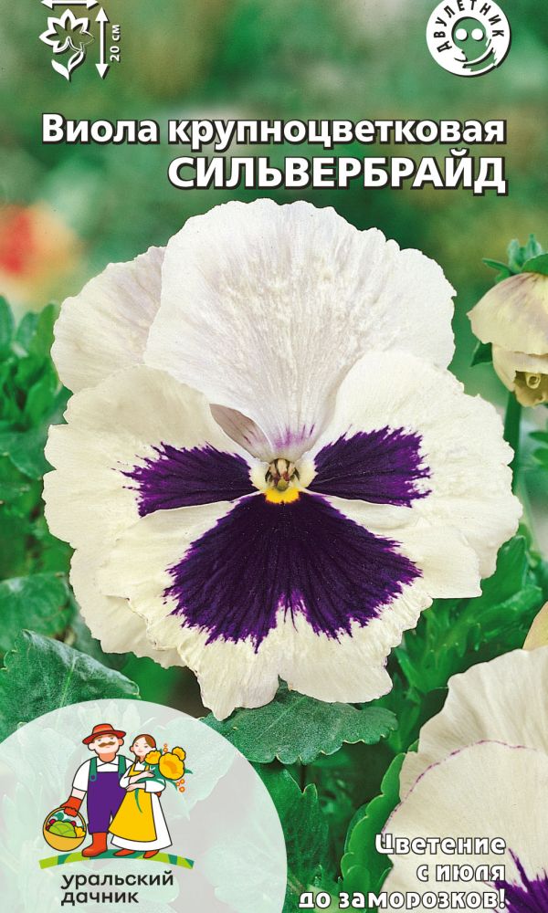 Группа Швейцарские гиганты. Цветки 8-9 см в диаметре, верхние лепестки тёмно-синие, на 3-х нижних – пятна у основания лепестков. Используют для клумб и бордюров, в цветники – группами.Посев: для весеннего, обильного цветения – июнь-июль на рассадочные гряды. На постоянное...
