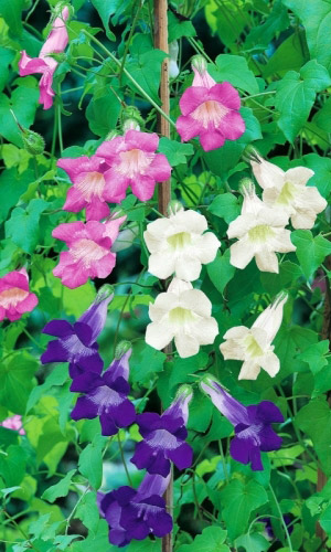 Необычное вьющееся растение. Цепляется за опору усиками, образует многочисленные побеги до 3 м. Листья перистые. Цветы колокольчатые, фиолетовые и белые, диаметром 6-8 см. Цветёт с июля до заморозков. Агротехника. Растение свето- и теплолюбивое. На плодородных почвах...