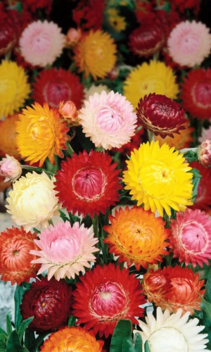 Один из самых эффектных, богатых по окраске сухоцветов. Цветёт махровыми соцветиями - корзинками белого, жёлтого, лимонного, кремового, лососевого, оранжевого, розового, красного и коричневого цветов. Используется при оформлении цветников и миксбордеров, но, в основном,...