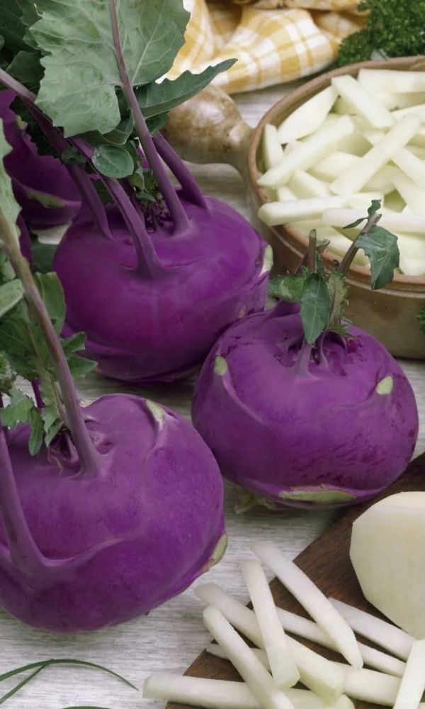 Скороспелый, высокоурожайный, гетерозисный гибрид. Стеблеплоды фиолетовые, округло-плоские, массой до 750 г. Мякоть белая, сочная, нежная, вкусовые качества отличные, волокнистость отсутствует.Ценность: дружное созревание, стабильная урожайность, морозоустойчивость, отличный вкус. По содержанию витамина С превосходит лимон и апельсин. Рекомендуется для использования в свежем виде, переработки и непродолжительного хранения...