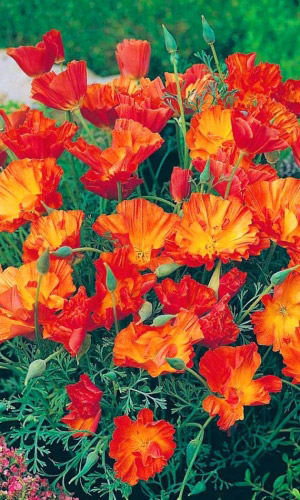 Смесь ярких разноцветных махровых соцветий, которые будут идеально смотреться на лужайках или в миксбордере. Они также хорошо подойдут к бордюрным посадкам, особенно если сочетать их с растениями с крупными зелёными листьями. Также небольшие группы эшшольции часто...
