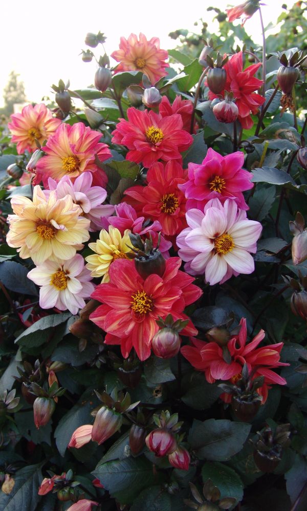 Низкорослые георгины высотой до 45 см. Стебель упругий, листья бронзо-коричневые. Соцветия - яркие, полумахровые диаметром 6-8 см. Георгины отлично подойдут для создания яркого бордюра, смешанной клумбы, а также для посадки в вазоны и балконные ящики.Посев: в марте-апреле на...