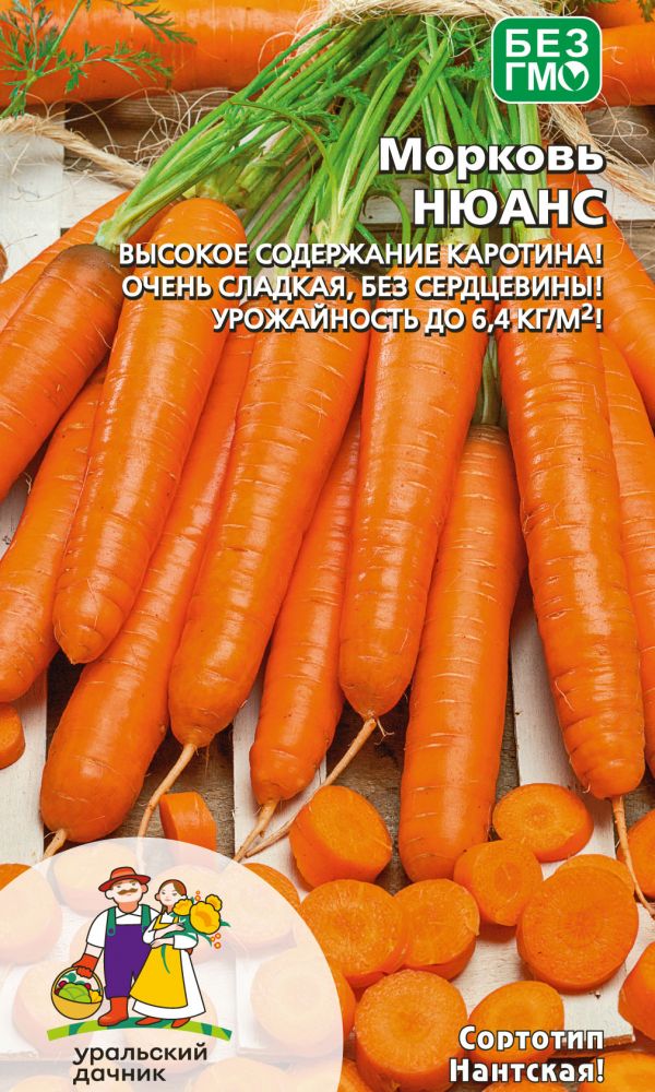 Открытый грунтСреднеспелый гибрид. Розетка листьев полураскидистая. Корнеплод цилиндрической формы с тупым кончиком (сортотип Нантский), длиной 18-20 см. Внутренняя и наружная окраска ярко- оранжевого цвета, сердцевина маленькая. Масса корнеплода – 120-180 г. Все корнеплоды выровненные, прекрасных вкусовых качеств. Рекомендуется для потребления в свежем виде и зимнего хранения...