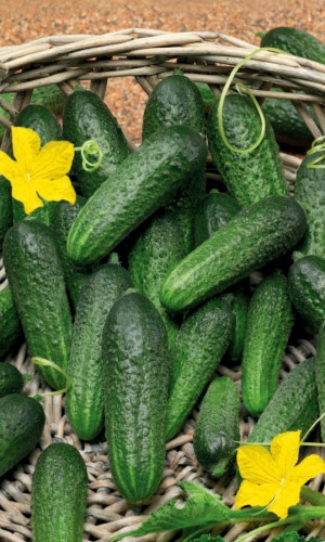 Высокоурожайный партенокарпический, раннеспелый гибрид голландской селекции для выращивания в открытом и закрытом грунте. Плоды тёмно-зелёные, мелкобугорчатые, плотные, длиной 7-9 см, хрустящие, без горечи, с отличным вкусом. Рекомендуется для потребления в свежем виде, консервирования и засолки.