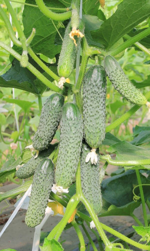 Раннеспелый гибрид для открытого и защищённого грунта. Растение сильнорослое, средневетвистое, преимущественно женского типа цветения. Зеленцы короткие, мелкобугорчатые, тёмно-зелёные, белошипые, длиной 8-10 см, плотные, хрустящие. Ценность гибрида: устойчивость к болезням и стрессовым условиям, раннеспелость, длительный период плодоношения, отличная транспортабельность.Рекомендуется для засолки и консервирования...