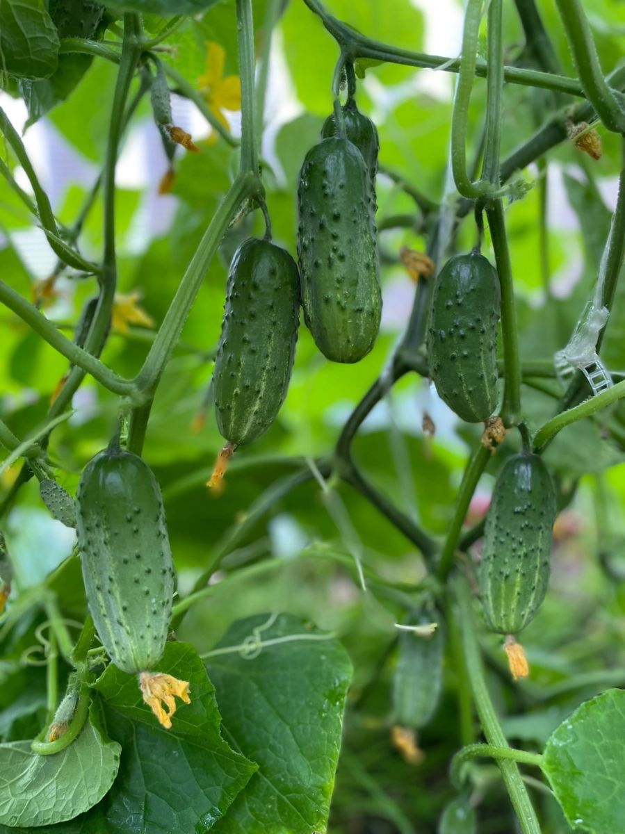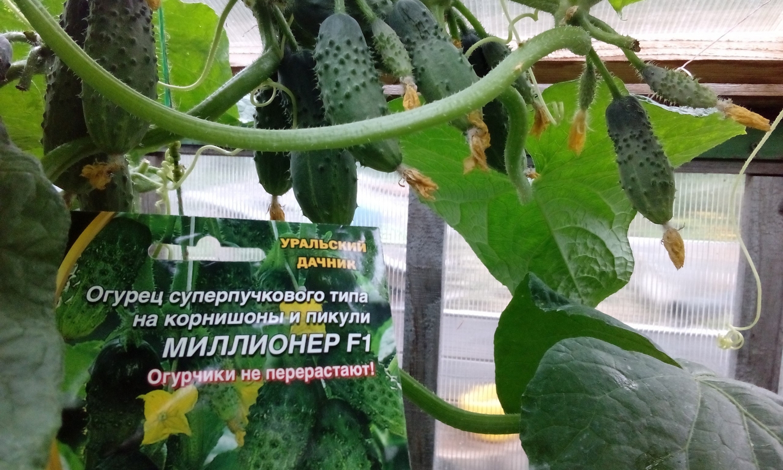 Новое направление в селекции суперпучкового огурца – создание корнишонных гибридов с замедленным ростом плодов, которые из-за этого практически не перерастают. Генетическое наследование этого признака, а также одновременное развитие очень большого количества завязей на растении (завязей в пучках может быть много – до 10-12) сдерживают рост зеленцов, предупреждая их перерастание. Этот признак важен для огородников, приезжающих на садовые участки только в выходные дни, не происходит потери значительной части урожая из-за переросших огурцов. Еще одна интересная особенность таких гибридов: для консервирования можно собирать даже неопыленные завязи пикульного размера (4-5 см), они будут плотными, хрустящими и необыкновенно вкусными!