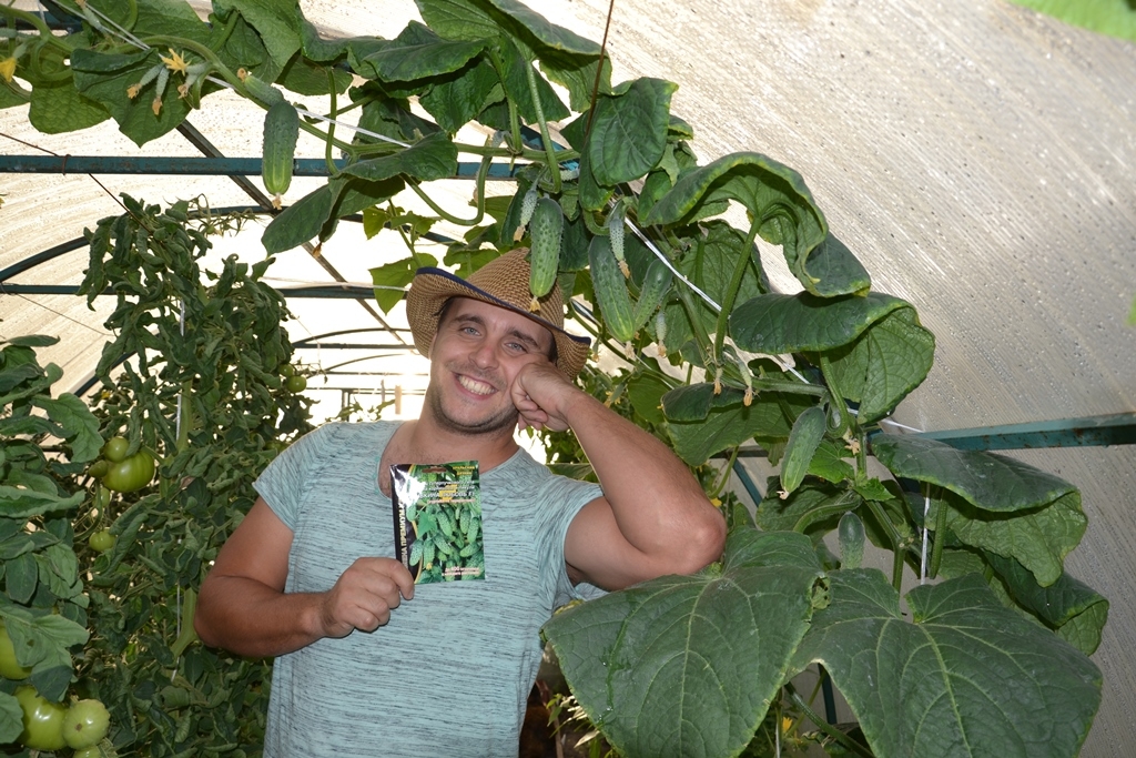 Раннеспелый гибрид для открытого и защищённого грунта. Растение сильнорослое, средневетвистое, преимущественно женского типа цветения. Зеленцы короткие, мелкобугорчатые, тёмно-зелёные, белошипые, длиной 8-10 см, плотные, хрустящие. Ценность гибрида: устойчивость к болезням и стрессовым условиям, раннеспелость, длительный период плодоношения, отличная транспортабельность.Рекомендуется для засолки и консервирования...