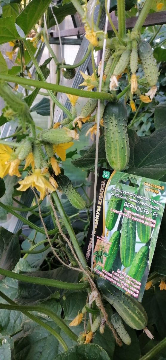 Среднеранний (50-55 дней) партенокарпический гибрид для выращивания в открытом грунте. Растение среднерослое, смешанного типа цветения. Зеленец цилиндрический, тёмно-зелёный с полосками средней длины, мелкобугорчатый, с белым опушением, длиной 10-12 см, массой 50-65 г, хрустящий и очень крепкий. Урожайность 2,5-4,5 кг/м2.Ценность гибрида: устойчивость к кладоспориозу, мучнистой и ложной мучнистой росе.Используется в свежем виде, для засолки и консервирования...