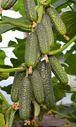 Среднеспелый, партенокарпический гибрид женского типа цветения, для открытого и защищённого грунта. Зеленцы цилиндрические, крупнобугорчатые, белошипые, длиной 9-10 см, отличного вкуса, без горечи, очень плотные, хрустящие, особенно хороши для засолки и...