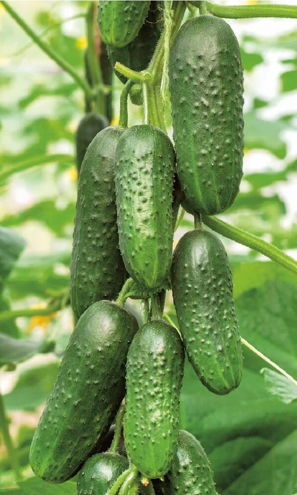 Отличный вкус свежих и консервированных огурчиков.Партенокарпик. Отличные вкусовые качества. Для открытого и закрытого грунта. Урожайный раннеспелый гибрид. Растение среднерослое, средневетвистое, женского типа цветения. В плодоношение вступает через 46-50 дней после появления всходов. Плоды удлинённо-цилиндрические, тёмно-зелёные, крупнобугорчатый, опушение чёрное, редкое. Масса 70-110 г. Устойчив к мучнистой и ложной мучнистой росе. Рекомендуется для потребления в свежем виде и для засолки...