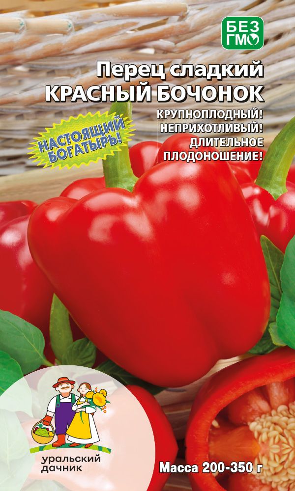 Среднеспелый сорт для открытого грунта и плёночных теплиц. Период от всходов до созревания плодов 105-120 дней. Растение высотой 45-55 см, раскидистое. Плоды конусовидные, красные. Поверхность гладкая. Толщина стенки плода 4-4,5 мм. Масса 50-60 г.Посев на рассаду в в конце февраля -...