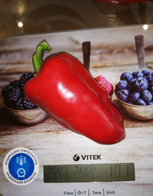 Среднеспелый сорт для открытого грунта и плёночных теплиц. Период от всходов до созревания плодов 105-120 дней. Растение высотой 45-55 см, раскидистое. Плоды конусовидные, красные. Поверхность гладкая. Толщина стенки плода 4-4,5 мм. Масса 50-60 г.Посев на рассаду в в конце февраля -...