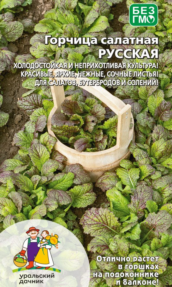 Очень полезная скороспелая салатная культура, холодостойкая и неприхотливая. Развивается быстро, дает самую первую витаминную зелень через 14-20 дней после всходов. Высевать можно в самые ранние сроки, как только позволит почва. Формирует крупную розетку с красивыми, нежными и сочными листьями. Обладает приятным горчичным вкусом, содержит практически все необходимые человеку витамины и минералы. Используется в свежем виде в салатах и бутербродах, подходит для соления и консервирования. Отлично растет в горшках на подоконнике и балконе.
