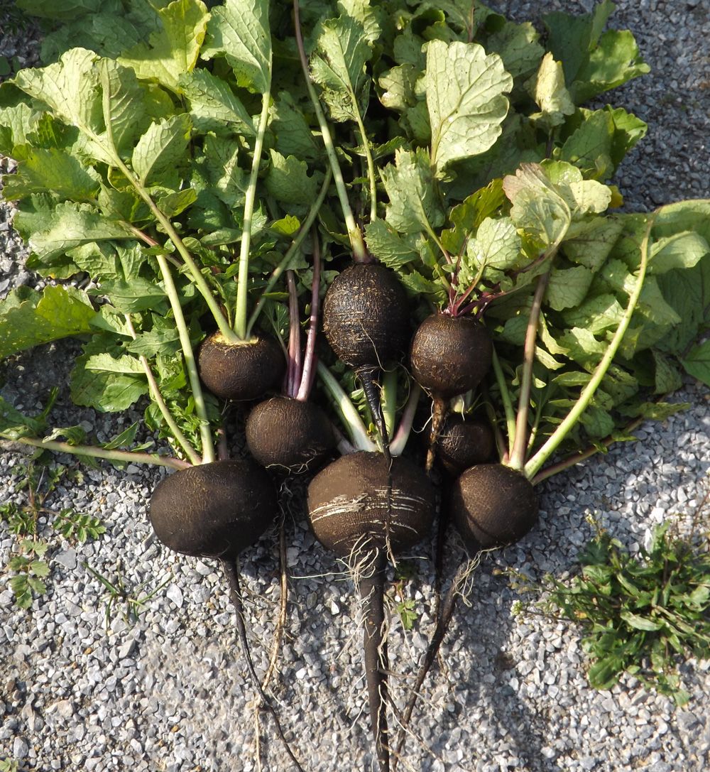 Самый популярный сорт для хранения! Корнеплод плоскоокруглый, чёрный, массой до 550 г, мякоть белая, плотная, сочная, слабоострая.