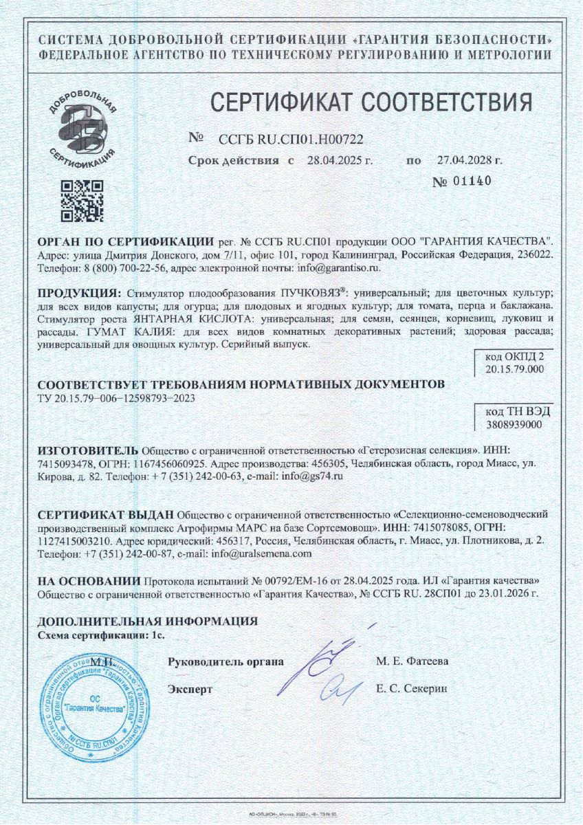 Растения без пустоцвета! 90 г/кг гиббереллиновых кислот, натриевые соли для огурца открытого и защищённого грунта! Естественный регулятор роста растений, для личных подсобных хозяйств.