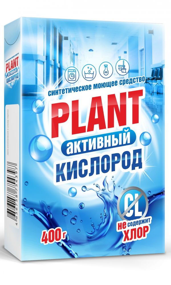 Средство моющее синтетическое "PLANT активный кислород" (содержит в своем составе перекисное кислородосодержащие соединение) с нормируемым пенообразованием для использования в лечебно-профилактических учреждениях, санаториях, профилакториях, банно-прачечных комбинатах, дошкольных учреждениях для замачивания, стирки и отбеливания изделий из различных видов тканей, кроме натуральных шерсти и шелка, в стиральных машинах любого типа и ручной стирки; для влажной уборки помещений; для мытья санитарно-технического оборудования, инструментов и других изделий, а так же для предстерилизационной обработки различных изделий.