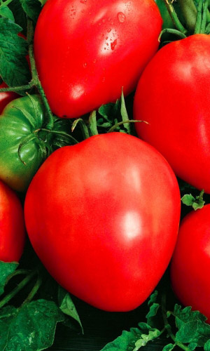 Суперурожайный среднеспелый сорт. Растение высокорослое (160-190 см). Плоды сердцевидной формы, мясистые, очень сладкие и вкусные, массой до 900 г. Отличается высокой устойчивостью к болезням: альтернариозу, фузариозу, вирусу табачной мозаики. Рекомендуется для использования в свежем виде и приготовления томато-продуктов. Идеален для приготовления томатов в собственном соку...