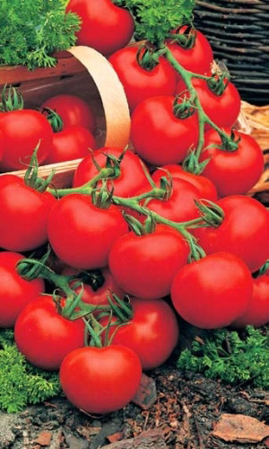 Лучший раннеспелый гибрид для остеклённых и плёночных теплиц. Растение высотой 150-180 см. В соцветии 6-8 круглых, гладких плодов равномерной сочно-красной окраски, массой 80-100 г. Вкусовые качества отличные. Гибрид отличается высокой энергией плодообразования, быстрым формированием плодов, устойчивостью к кладоспориозу, фузариозу и вирусу табачной мозаики.