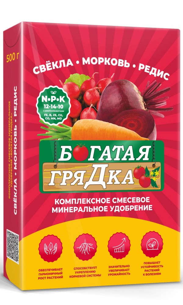 Комплексное смесевое минеральное удобрение (тукосмесь) серии «Богатая грядка» тепличное – для томата, перца, баклажана. NPK 12:7:17 с микроэлементами: Fe, В, Ze, Си, Со, Мп, Мо. Высокоэффективное, сбалансированное удобрение для основной заправки и подкормки томатов, перцев,...