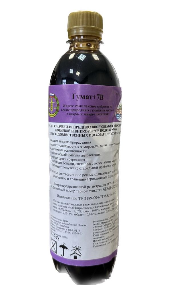 Гумат +7В производится из бурых углей (леонардитов) (не из торфа, от торфяного гумата очень мало пользы) месторождений Иркутской области, с микроэлементами, для растений (удобрение, стимулятор роста, средство защиты). Стимулятор роста растений и развития корневой системы...
