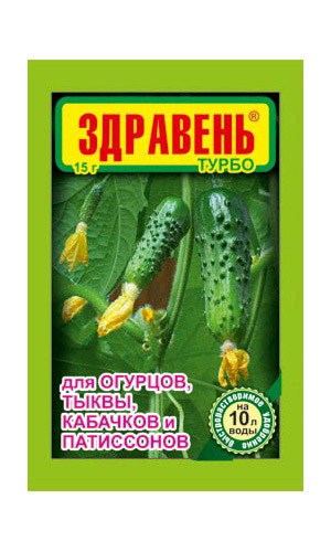 «Здравень турбо для огурцов, тыквы, кабачков и патиссонов» ускоряет сроки созревания урожая, увеличивает число завязей и зеленцов, значительно поднимает урожайность.ускоряет сроки созревания урожая;увеличивает число завязей и зеленцов;значительно поднимает урожайность;повышает содержание витаминов;улучшает салатные и засолочные свойства.Не содержит хлора...