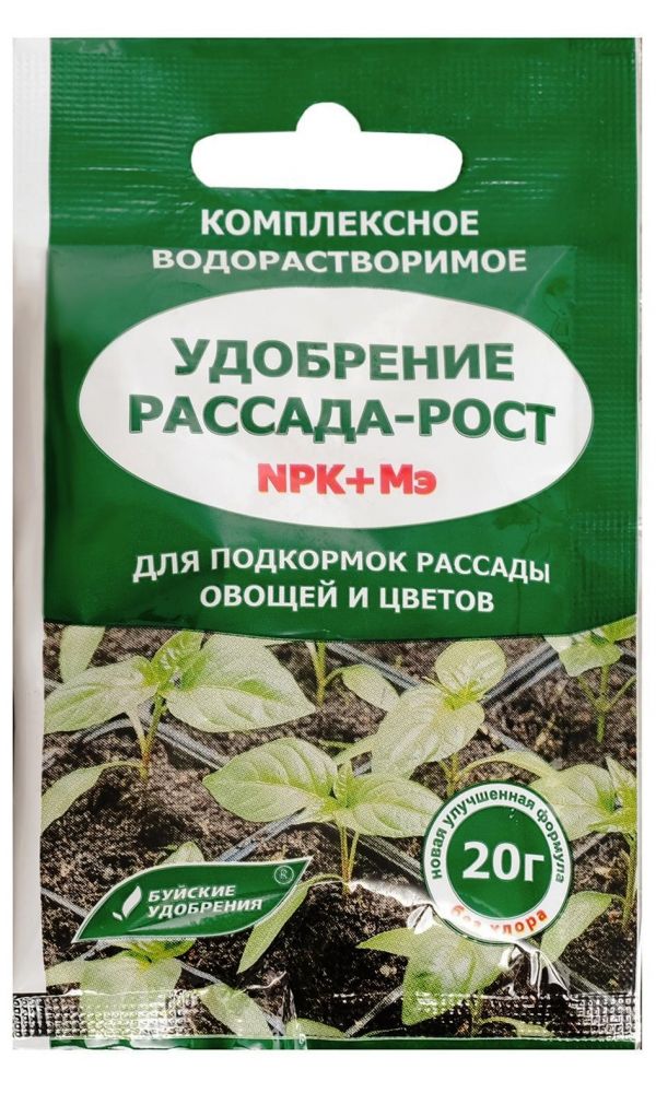 Комплексное водорастворимое бесхлорное минеральное удобрение «Рассада-Рост» содержит макро- и микроэлементы для подкормок рассады овощных и цветочных культур.