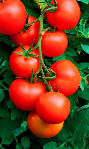 Кисть... кисть... кисть... Собьёшься со счета! Высокорослый, суперурожайный гибрид. Плоды округлой формы, гладкие, интенсивно-красной окраски, массой 90-110 г, плотные. Очень хорош в засолке. Отлично хранится при сборе целыми кистями.Ценность гибрида: устойчивость к стрессам, высокая завязываемость плодов даже в прохладную, пасмурную погоду, стабильная урожайность...